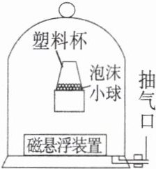 (1)蓝牙音响悬浮于磁悬浮装置上方,随后用手机接通蓝牙音响,当音响发声时,观察到塑料杯内的泡沫小球不停跳动;当音响停止发声时,泡沫小球随之停止跳动,这一现象说明:发声的物体都在