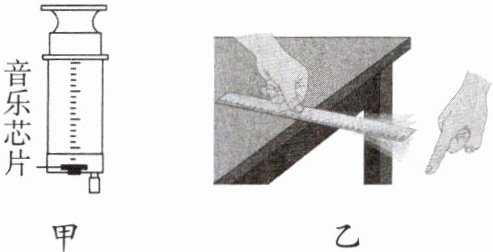 5. (203、204)(1)如图甲,将一块正在发声的音乐芯片放在注射器中,再将活塞推到底端,用橡胶帽封闭注射口,然后用力往外拉活塞,这时听到注射器中音乐芯片的声音会变