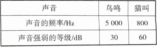 4. (203、204)(2024年广州)监测器测得某次鸟鸣和猫叫的声音信息如下表,下列说法正确的是(