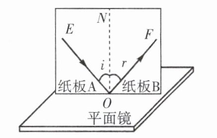 (2)如果纸板没有与平面镜垂直放置,当光贴着纸板沿EO入射时,____(选填“能”或“不能”)在纸板上看到反射光。规范操作后,在纸板B上可看到光线沿OF方向射出,在纸板上用笔描出光线EO和OF的轨迹,则EO与垂直镜面的直线ON的夹角i是____(选填“入射角”或“反射角”)。