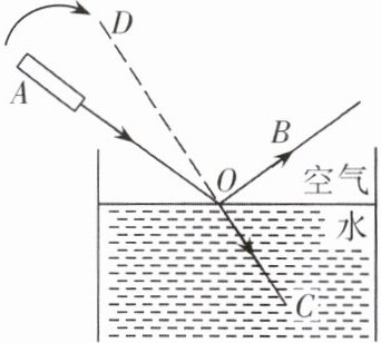 为折射光线。保持入射点O不动,在竖直平面内,顺时针缓慢旋转入射光线AO至图中虚线DO位置,反射角将变小