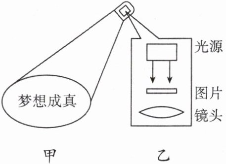 1. (504)(2024年江苏改编)如图甲所示,是公共场所的宣传投影灯,装在高处的投影灯照在地面上出现图案,其内部结构如图乙所示。下列说法正确的是(