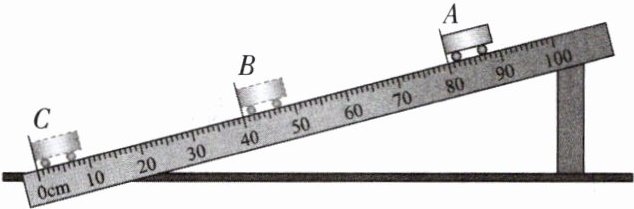 3. (109)在如图所示的斜面上测量小车运动的平均速度,让小车从斜面的 A点由静止开始下滑,分别测出小车到达 B 点和 C 点的时间,即可测出不同阶段的平均速度。对上述实验,数据处理正确的是(