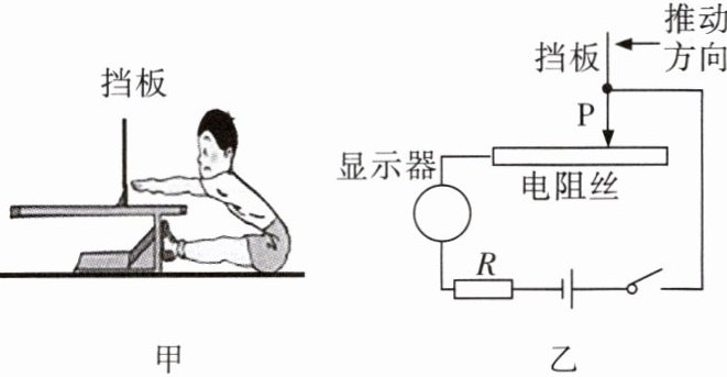 5.(1808)【物理学与日常生活】图甲是九年级同学用坐位体前屈测量仪测试身体柔韧性,图乙是其内部电路图(电源电压恒定)。测试者沿着推动方向推动挡板,“显示器”示数大小能够反映测试者柔韧水平的高低。下列与该测量仪有关说法正确的是(