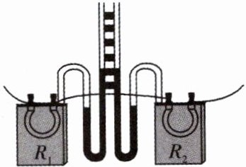 (1)如图所示,两个密闭的透明容器中装有相等质量的空气,两个容器中的电阻丝$R_1、$$R_2(R_1<R_2)$串联接到电源两端。电阻丝$R_1$和$R_2$串联的目的是保证