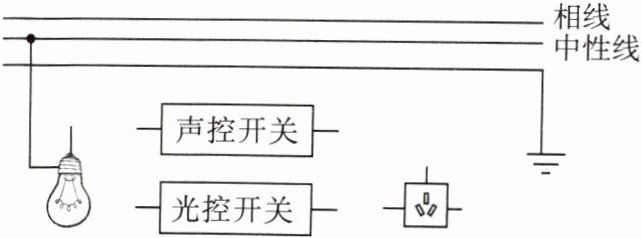 1. 灯泡支路:相线→声控开关→光控开关→灯泡金属触点,灯泡螺旋套→中性线(声控与光控开关串联,共同控制灯泡)。