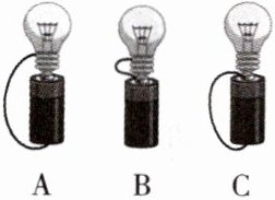 2.(1507)李老师让同学们观察小灯泡结构,然后只用一根导线和一节电池点亮小灯泡,同学们设计了如图的电路,小灯泡能够发光的是