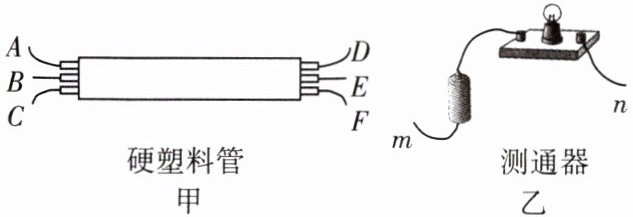 (1)连接A和B,将测通器的m连接到D上,当n连接F时小灯泡发光,连接E时小灯泡不发光,由此可以确定____