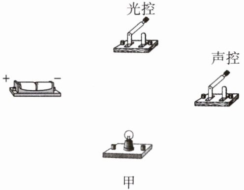 5.(1512)光控开关在天黑时自动闭合,声控开关在有声音时自动闭合。请用笔画线代替导线,将图中的器材连接成只有在夜晚且有人经过发声时,灯泡才会发光的电路。