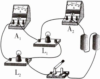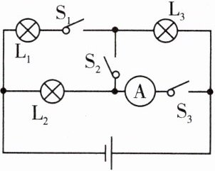 的电流;闭合所有开关时,电流表测灯$L_1、L_2$