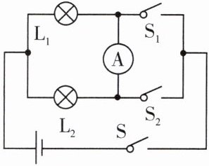 (2)小波设计了如图所示的电路图,想分别测出$L_1$和$L_2$的电流,请你分析该电路是否可行并说明理由。
