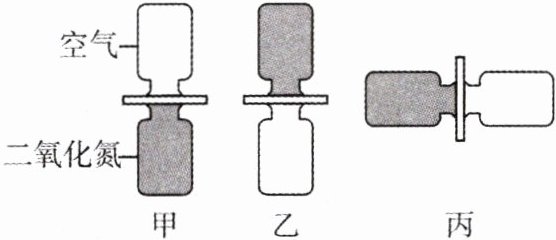 5.(1306)将两个分别装有空气和红棕色二氧化氮气体($\rho_{二氧化氮}>\rho_{空气}$)的玻璃瓶口对口对接,中间用玻璃板隔开。抽开隔板后,通过观察瓶内颜色变化来推断气体分子是否做无规则运动。对于玻璃瓶的三种放置方法(如图所示),四位同学判断正确的是(