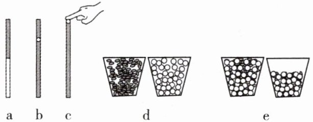 (3)为了便于学生了解分子模型,李老师分别用细颗粒小米和大颗粒红豆分别装满两个杯子(图d),接着将小米和红豆混合后再分装,发现装不满两杯(图e),该实验______