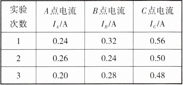 |实验次数|A点电流Iₐ/A|B点电流Iв/A|C点电流Ic/A|