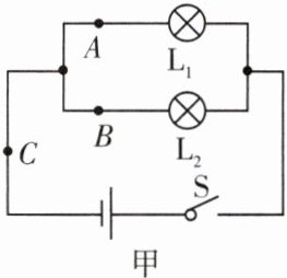 (2)连好图乙电路闭合开关,发现小灯泡$L_1$亮、$L_2$不亮,故障原因可能是