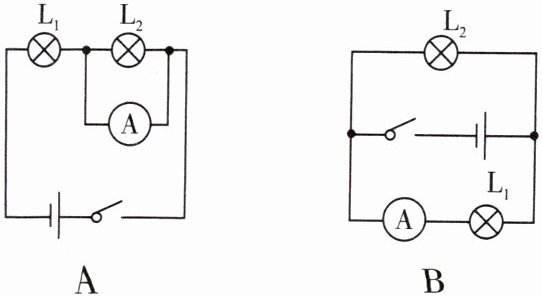 6.(1514)(2023年山东)下列电路中,闭合开关后,电流表能正确测量出通过灯泡$L_2$电流的是(