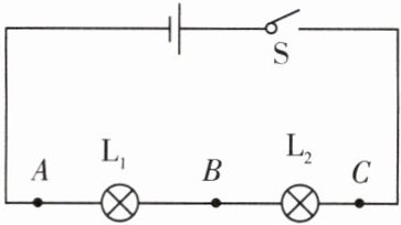 1.(1602)如图所示电路中,已知电源电压为$6 V,L_1、$$L_2$为两个不同规格的小灯泡,当开关S闭合后两灯都不亮。用电压表进行测量时,测得AB两点之间的电压为零,BC两点之间的电压为6 V,则故障原因可能是(