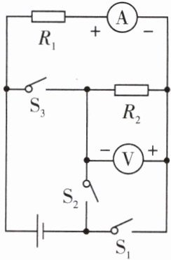 )。A.只闭合开关$S_2$时$,R_1$和$R_2$并联,电压表测$R_2$两端电压