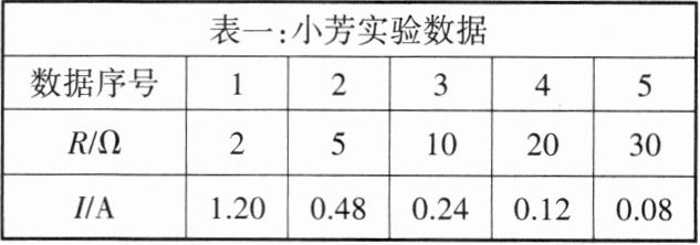 【证据】图甲是小芳的实验电路图。已知电源电压恒为4.5 V,滑动变阻器规格为“20Ω 0.2 A”,可供选择的定值电阻的阻值分别为2Ω、5Ω、10Ω、15Ω、20Ω和30Ω。