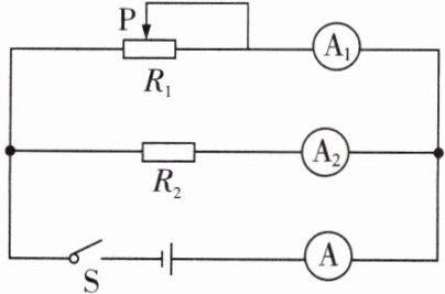 (1)闭合开关,$R_1$与$R_2$并联,电流表$A$测干路电流,电流表$A_1$测$R_1$支路的电流,电流表$A_2$测$R_2$支路的电流。