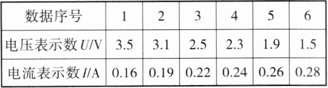 |电压表示数U/V|3.5|3.1|2.5|2.3|1.9|1.5|