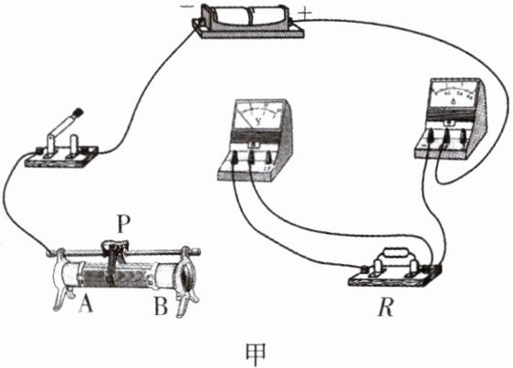 (选填“A”或“B”)端,使电路中的电流在开始测量时最小。③移动滑片P至不同位置,进行三次实验。测得第一次、第二次的电压和电流值分别为1.5 V和0.14 A、2.0 V和0.2 A,第三次电压表和电流表示数如图乙和丙所示。