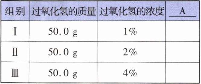 |组别|过氧化氢的质量|过氧化氢的浓度|A|