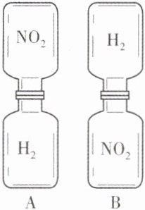 6. (科学思维)把分别充满红棕色${NO_2}气体和无色{H_2}$的集气瓶,按照右图两种方式放置,然后把两瓶中间的玻璃片抽走,使两瓶口密合在一起(不用振荡),可观察到A中两瓶气体的颜色很快趋于一致(两气体不反应),而B中需很长时间才能达到同样的效果。下列说法中不正确的是(