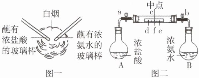 (3)图二中同时打开弹簧夹a和b,玻璃管c中d处白烟最浓厚,说明氨分子比氯化氢分子运动得