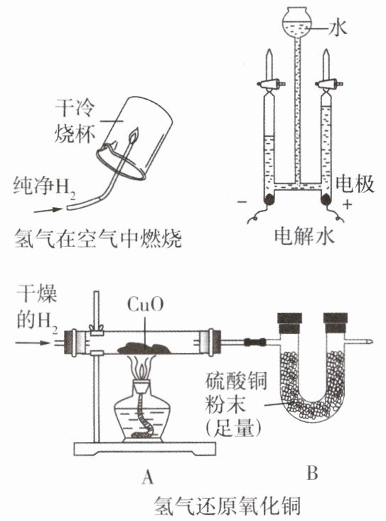 8. 利用下图所示实验,可验证水由氢、氧两种元素组成。说明:①氢气与黑色的氧化铜反应,生成铜和水。②白色硫酸铜粉末吸水后变蓝。