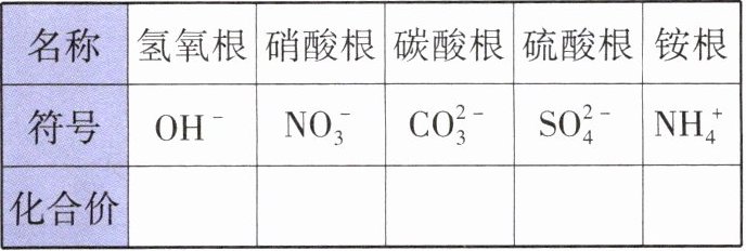 |名称|氢氧根|硝酸根|碳酸根|硫酸根|铵根|