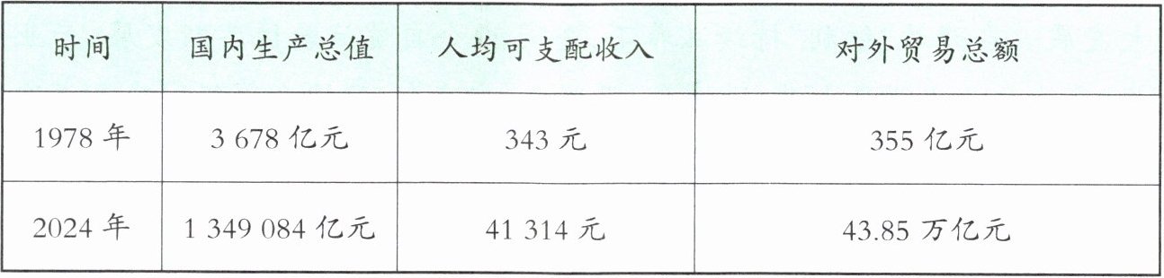 2. 为了讲好改革开放故事,充分展现改革开放以来的伟大成就,汇聚改革开放再出发的磅礴力量,某校九年级(1)班的同学们搜集了改革开放相关的部分数据。从数据的变化中我们可以得出( )