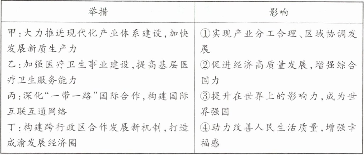 |乙:加强医疗卫生事业建设,提高基层医疗卫生服务能力|②促进经济高质量发展,增强综合国力|