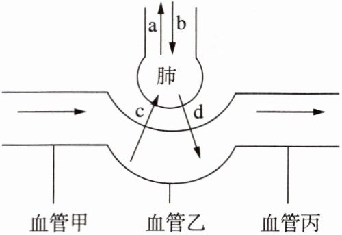 6. 下图为肺泡与血液的气体交换示意图,其中可能代表二氧化碳气体的是(
