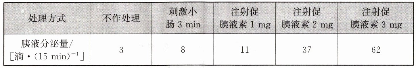 (3)为研究胰液分泌的调节,某研究小组利用小鼠进行了相关实验,实验处理及结果如下表所示。