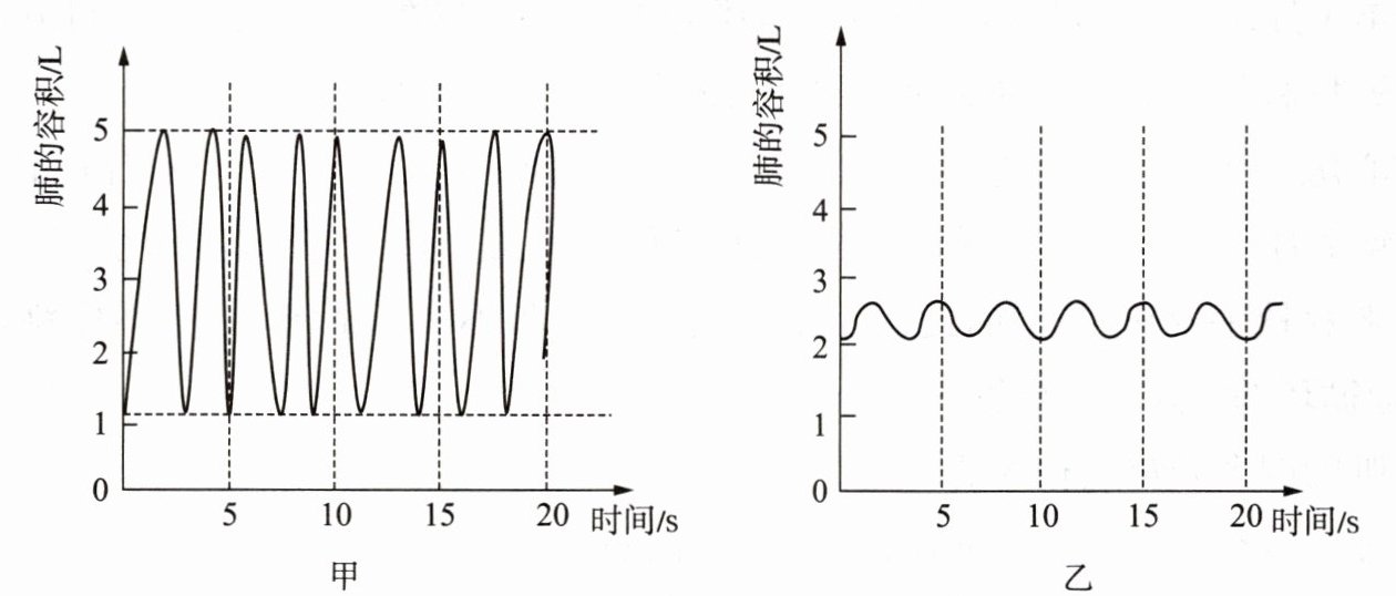 23. 下页两幅曲线图表示一个人在甲、乙两种状态下的呼吸情况。下列有关分析正确的是(