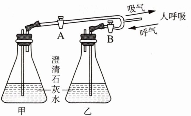 24. 为了比较人体呼吸过程中气体成分的变化,某同学设计了如下图所示的装置进行实验。下列说法正确的是(
