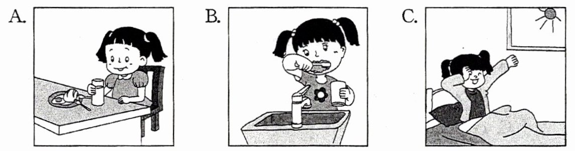 ) 9. How often does the girl clean her bedroom?A. Every day.