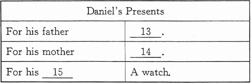 听第一篇短文,回答第 13—15 小题。请根据短文内容,选择正确答案,完成信息记录表。答题完毕,请等待"嘀"的信号,进入下一篇短文。