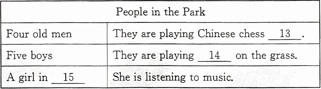 听第一篇短文,回答第 13—15 小题。请根据短文内容,选择正确答案,完成信息记录表。答题完毕,请等待“嘀”的信号,进入下一篇短文。