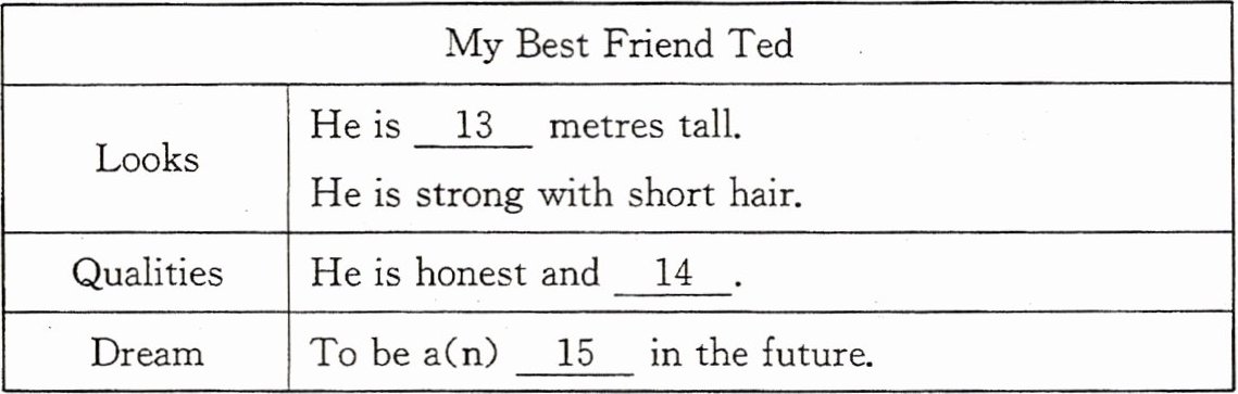 听第一篇短文,回答第13—15小题。请根据短文内容,选择正确答案,完成信息记录表。