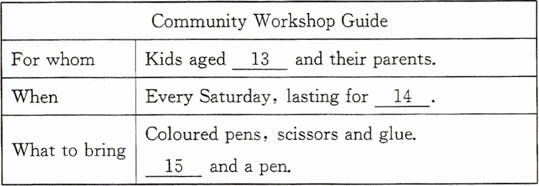 听第一篇短文,回答第 13—15 小题。请根据短文内容,选择正确答案,完成信息记录表。