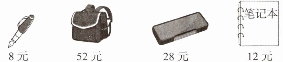 (1) 买 3 本笔记本和 1 个书包,应付多少元?(列出综合算式并计算)