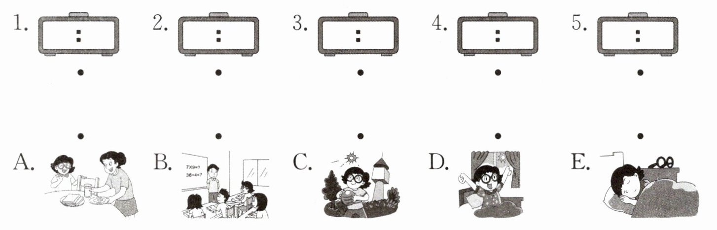 二、听录音,根据所听内容写出正确的时间,并连线。(听两遍)