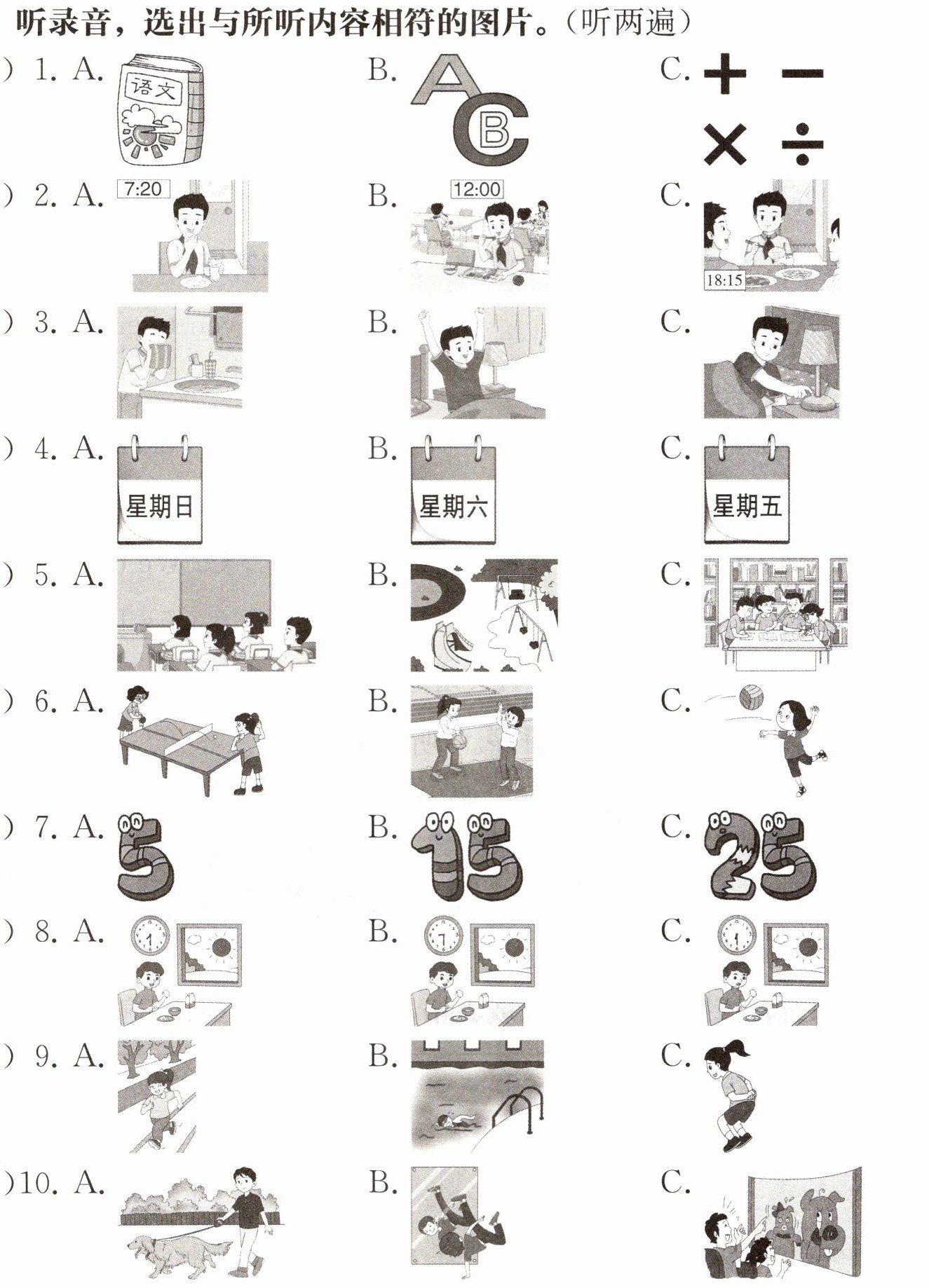 一、听录音,选出与所听内容相符的图片。(听两遍)