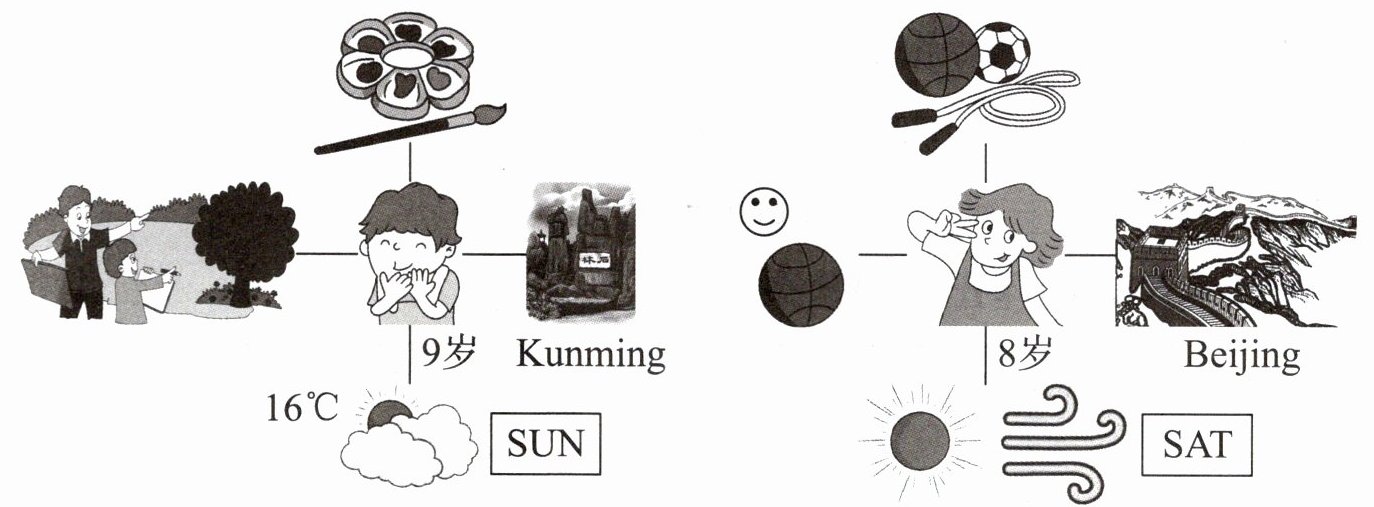 九、书面表达。 根据图片提示,仿照示例写句子。