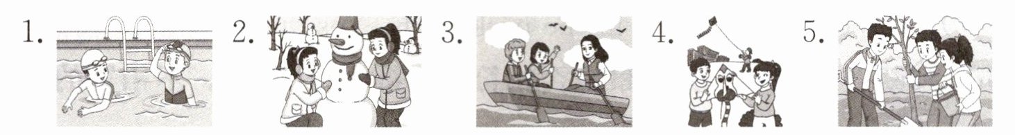 ) 3. A. We plant trees. B. We pick fruit. C. We play in the snow.(