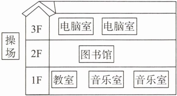 It has a big playground. On the first floor, there are some classrooms, two music rooms. On the second floor, there is a library. On the third floor, there are two computer rooms.