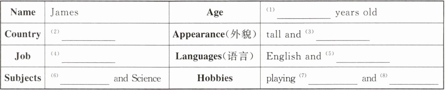 1. 18 2.Greece 3. thin 4.student 5.Chinese 6.Maths 7.football 8.swimming
