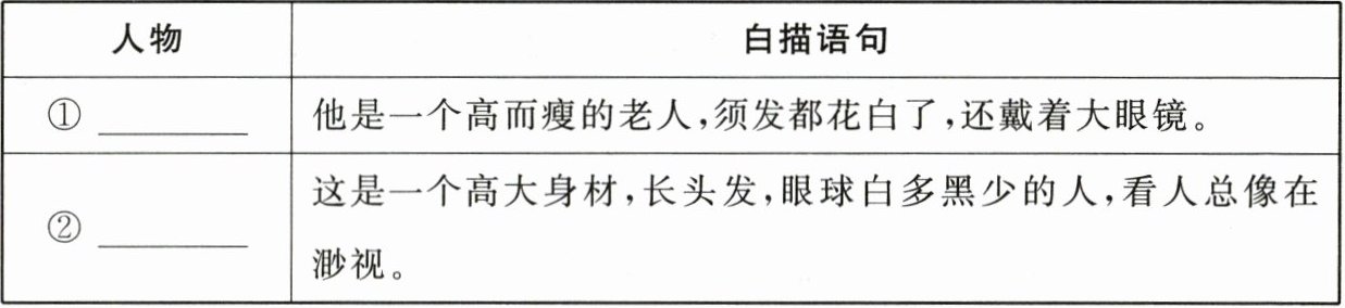 (2)鲁迅写人常用白描手法,寥寥几笔,人物形象跃然纸上。请根据其散文集《朝花夕拾》中的两处白描,填写出对应的人名。(2 分)